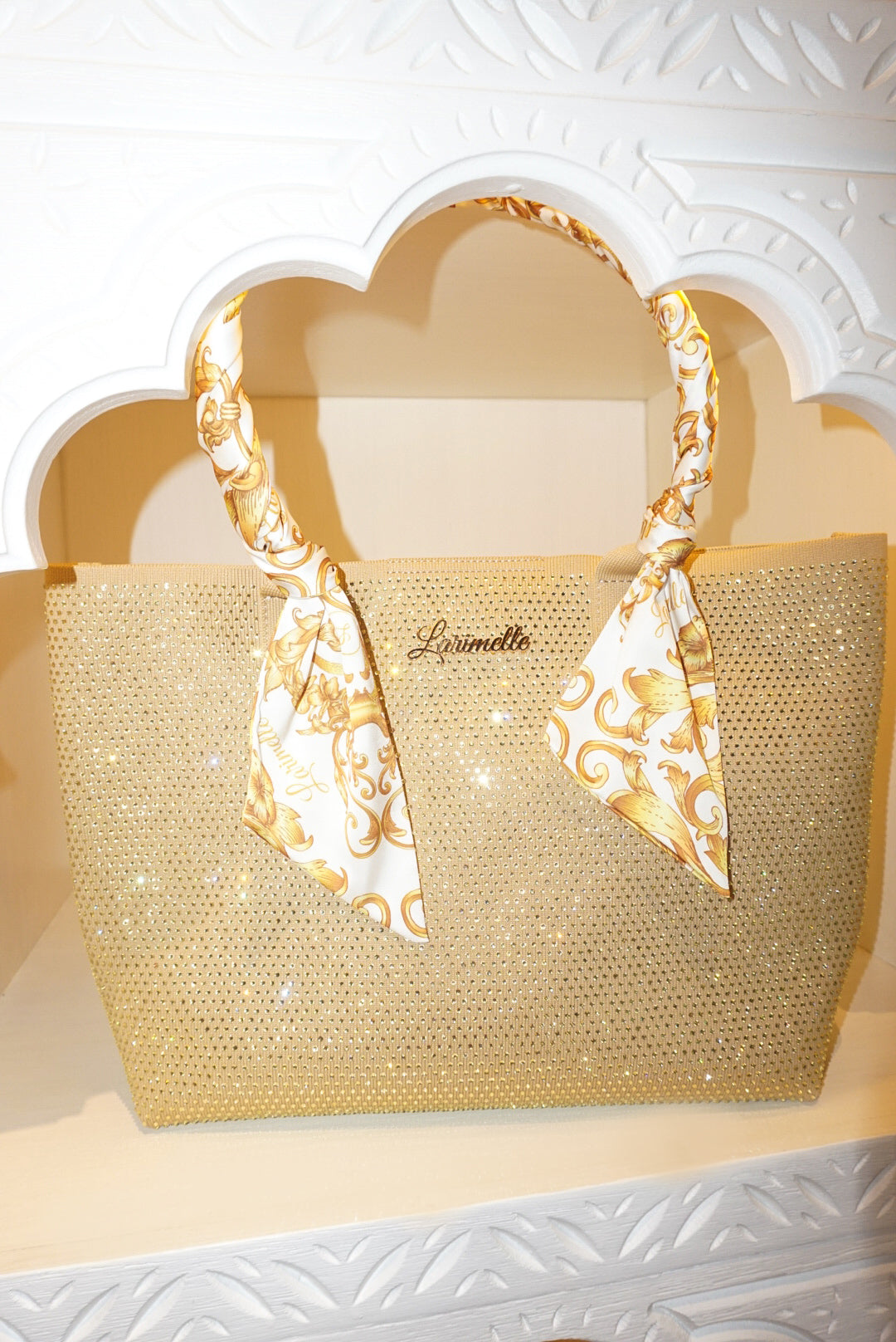 Step into the spotlight with our ultra-luxurious Larimelle Crystal Beach Bag, a masterpiece designed to dazzle. Drenched in thousands of hand-applied crystals, it shimmers effortlessly from day to night, capturing the light—and attention—wherever you go.